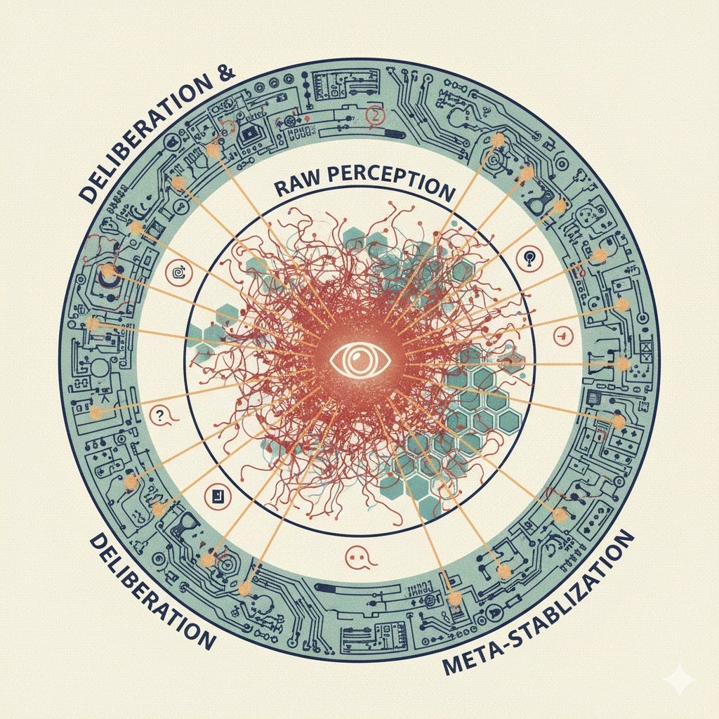 We also deliberate about right and wrong. But in this framework, deliberation is secondary: it’s a meta-layer that regulates and refines the outputs of perceptual systems already engaged in maintaining order.
